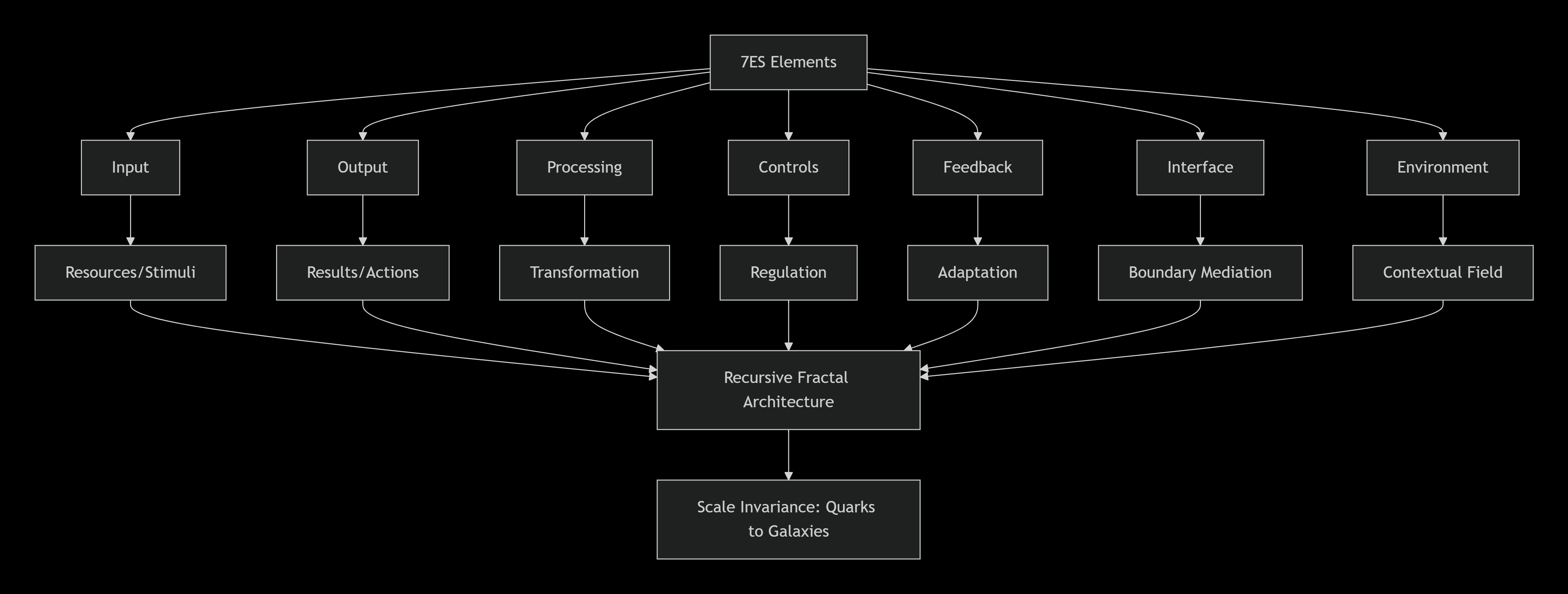 Recursive Property The principle that each element within a system can be analyzed as a complete 7ES system in its own right. This enables continuous auditability across scales, from quantum fields to cosmic structures, and provides a mechanism for understanding how micro-level changes affect macro-level behaviors.