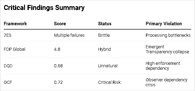 Current Trajectory: 72% probability of functional collapse within 3-5 years without structural intervention.