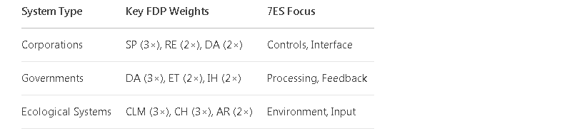 Critical: Weight FDPs by system type (e.g., SP matters 3× more for NGOs than tech firms).